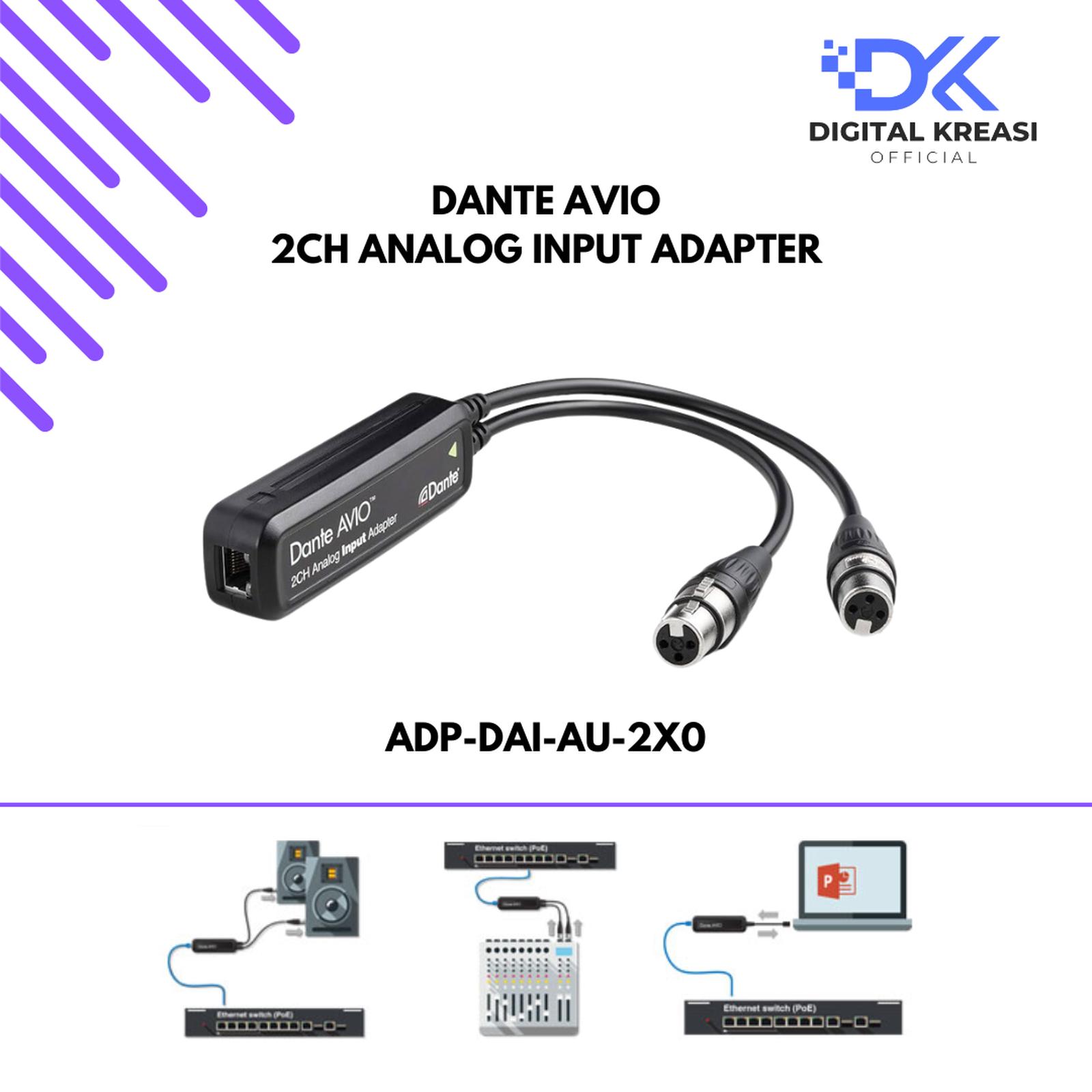 - Menggabungkan perangkat audio analog ke jaringan Dante yang sudah ada.