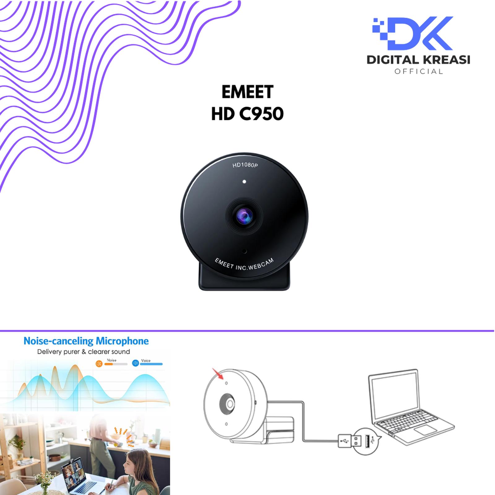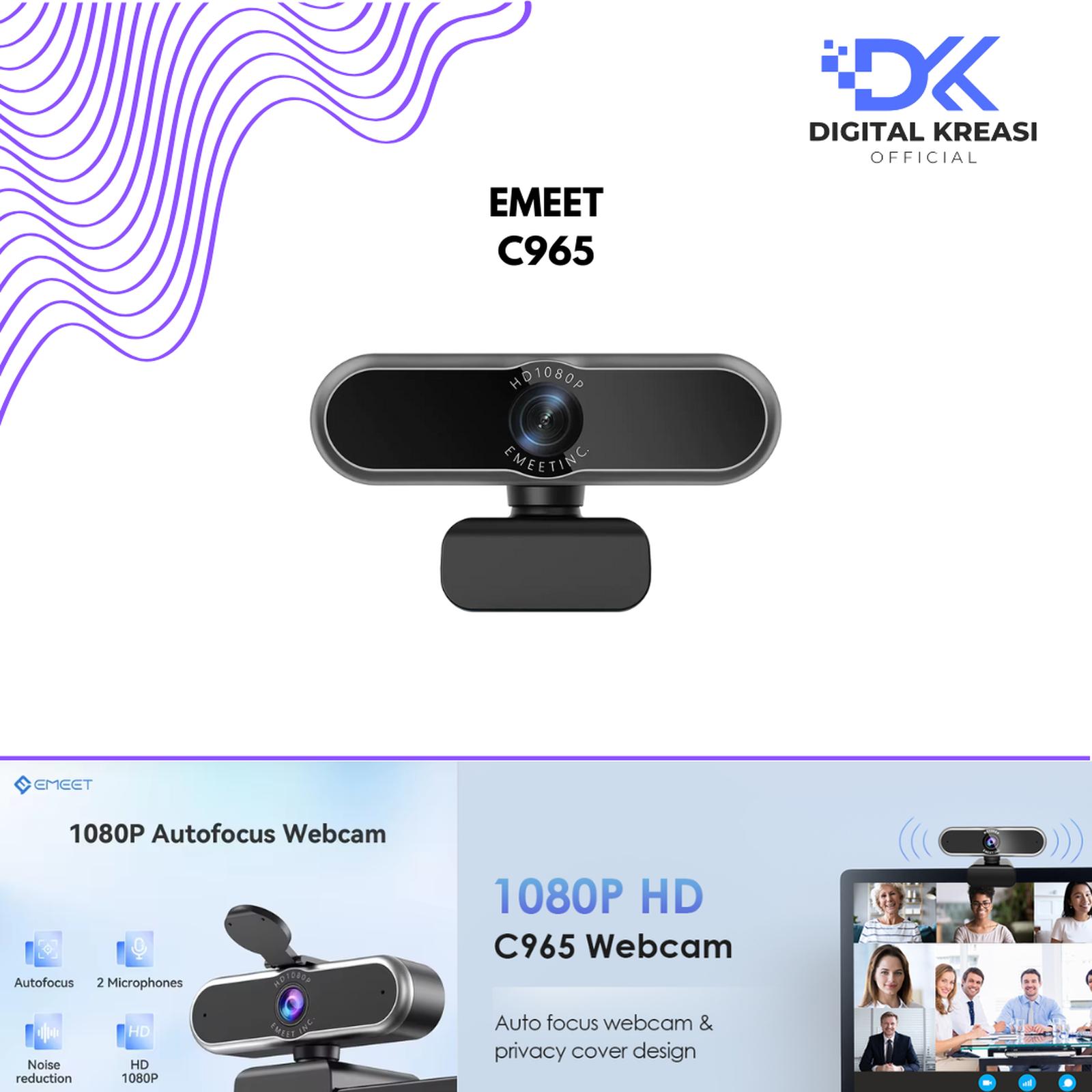 eMeet C965 1080P Full HD Webcam merupakan webcam yang secara khusus dirancang dan dioptimalkan untuk streaming video profesional. Dengan kualitas resolusi video 1920x1080p 30fps dan lensa anti-silau 4 lapis menghasilkan video yang tajam dan halus. Built-In 2 Microphone omnidirectional noise reduction dapat mengurangi kebisingan disekeliling kita sehingga menghasil output suara yang berkualitas. Memiliki 96° Field on View dengan jangkauan yang lebar dan plug-and-play.