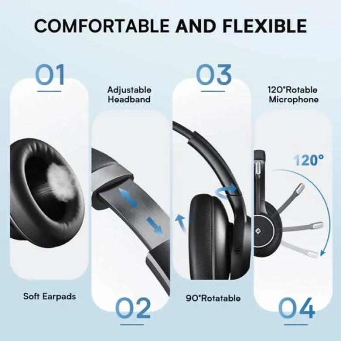 eMeet HS100 merupakan headset untuk professional conference yang dilengkapi dengan smart noise cancellation and pengaturan suara di area sekitar